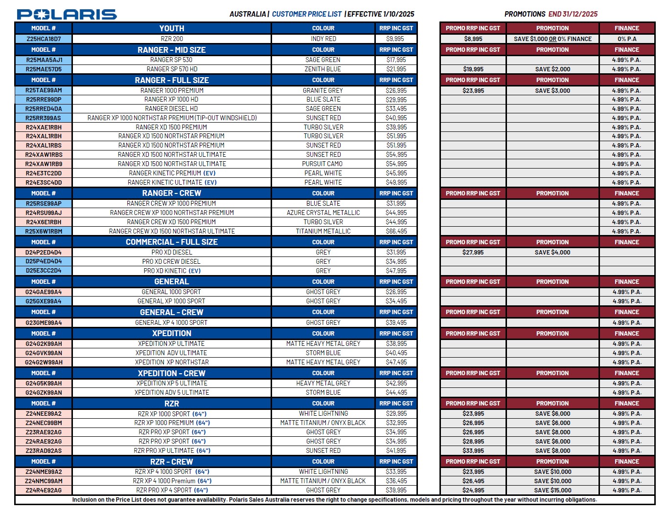 Current Polaris Specials